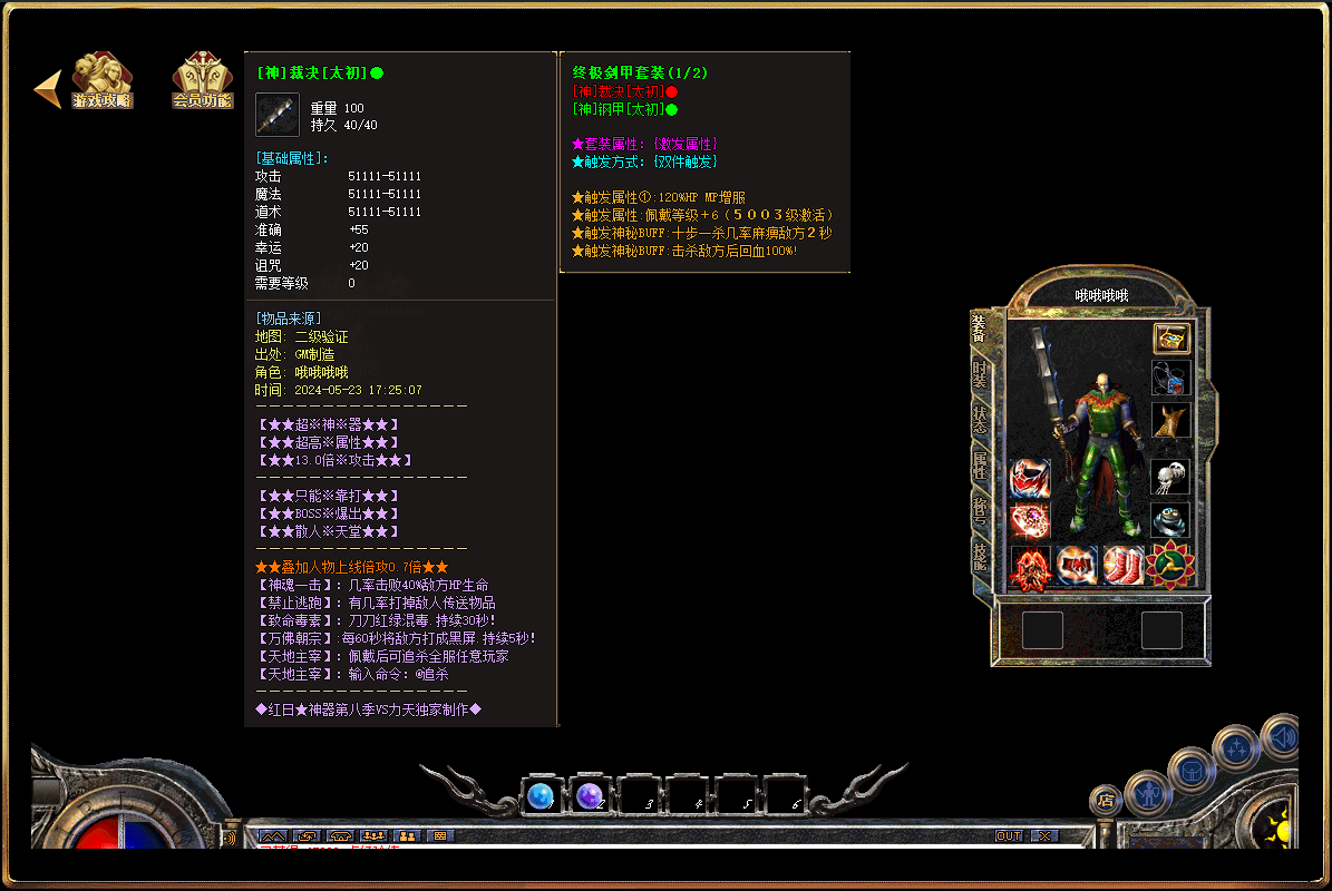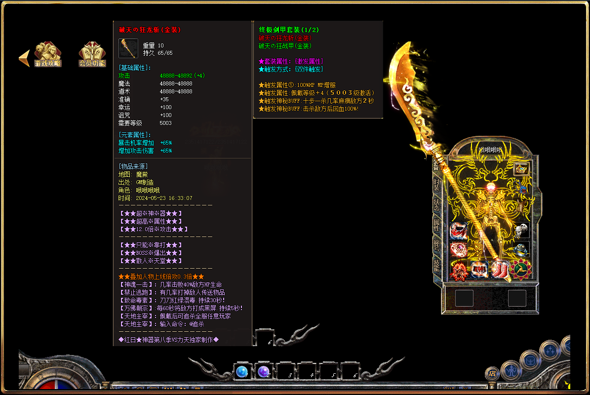 [爆率介绍] :所有装备爆率适中,绝无保留,所有装备都可爆出,无暗坑